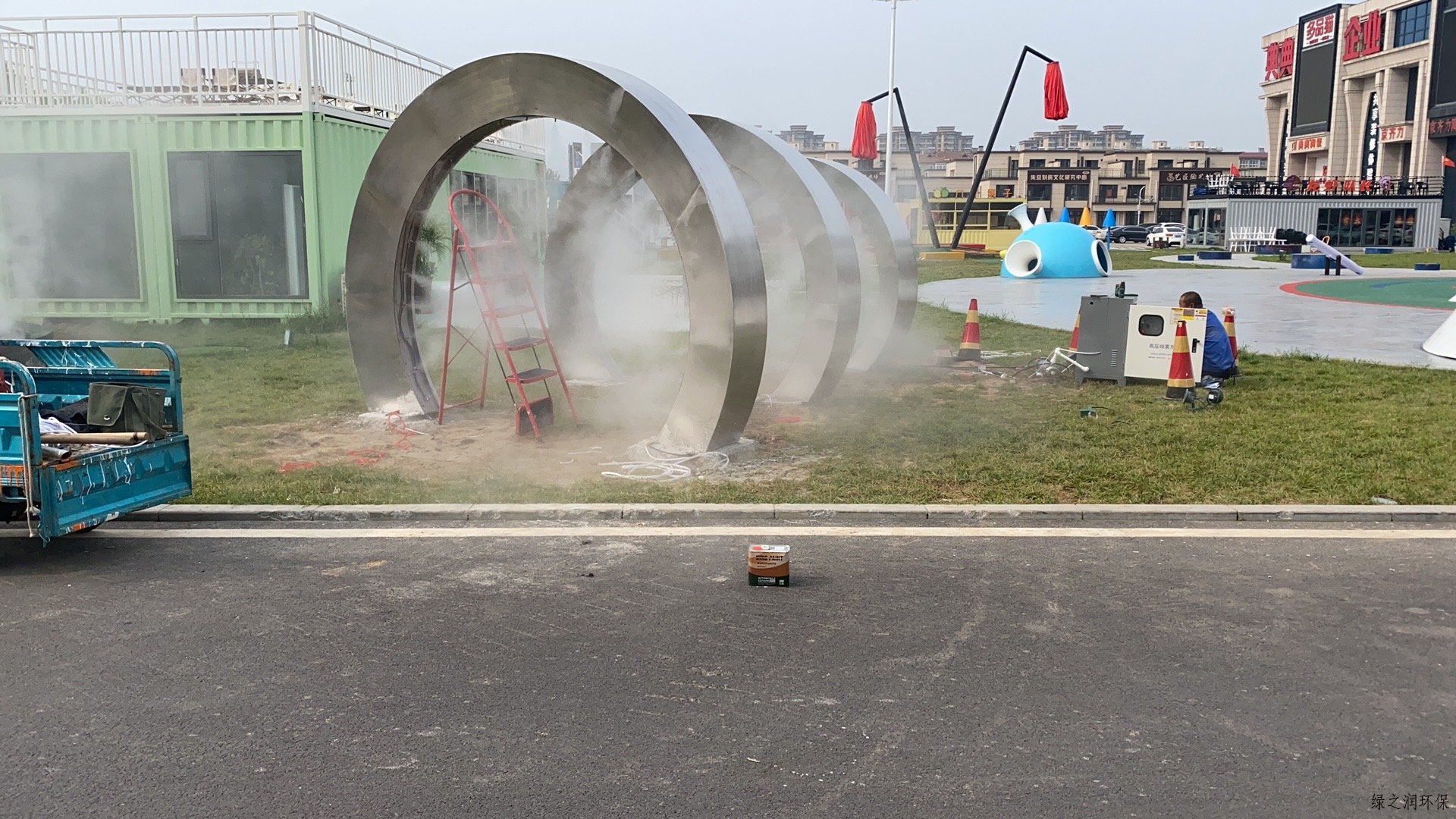 淄博瓷器城景观造雾系统一个主机带一个喷雾环